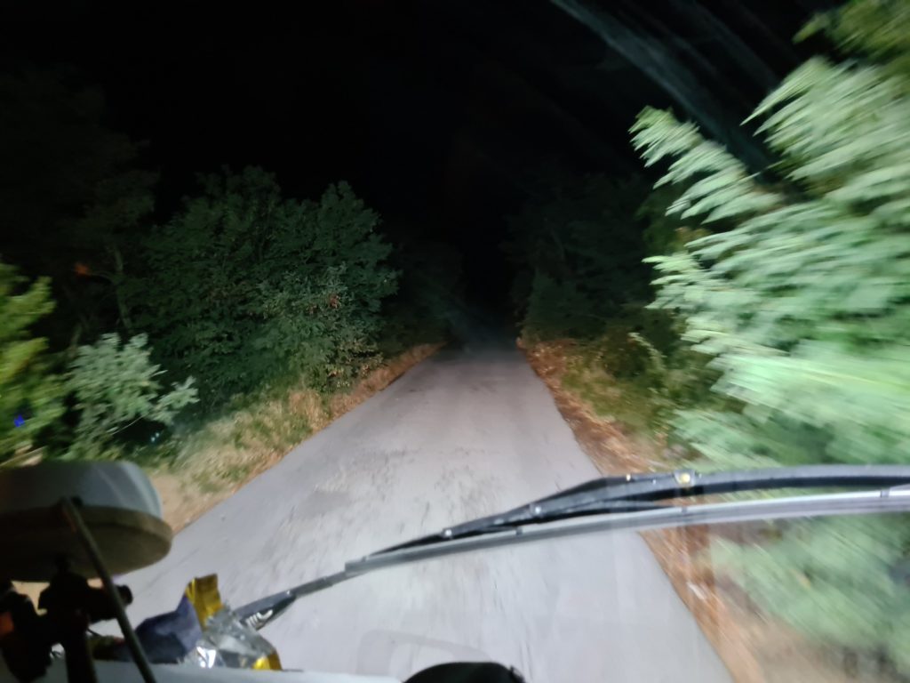 Bułgarskie drogi nas nie rozpieszczają, a dodatkowo nawigacja prowadzi nas po zmroku w głęboki las. Na szczęście Arek zareagował w ostatniej chwili i wyprowadził nas z powrotem na właściwy kurs.