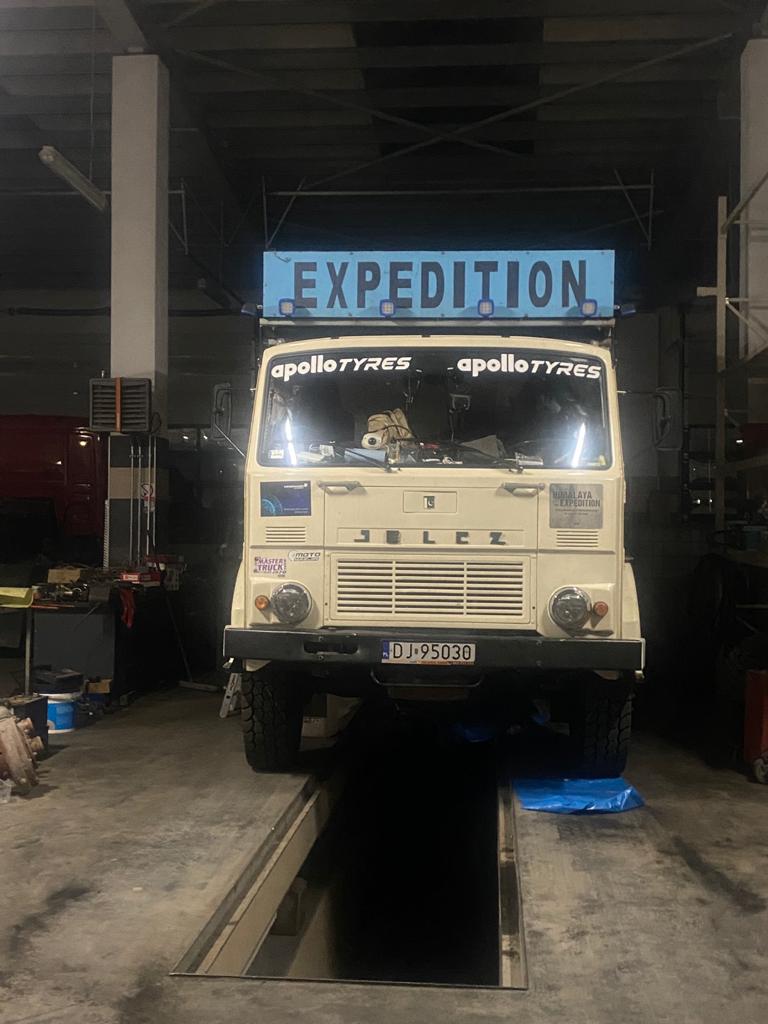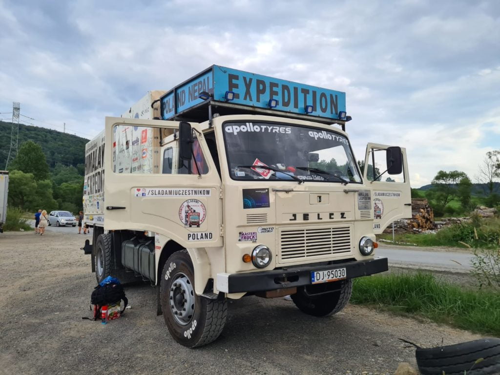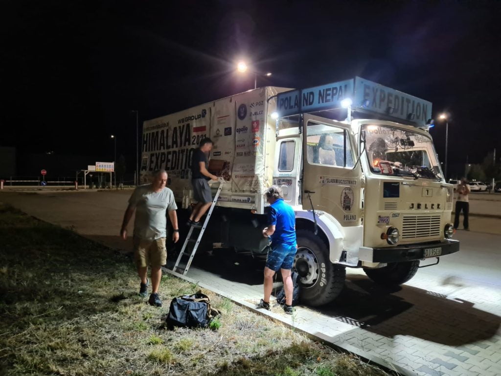 Do firmy transportowej Li-Ki oraz Lizsbeck trafiamy także dzięki wsparciu Apollo Tyres, którzy jadą z nami aż na Węgry. Firma również mieści się w Nowym Sączu i po chwili jesteśmy już w ich hali. Przy tej okazji sam właściciel Stanisław Lis naprawia z Arkiem nasz tłumik, na który nie było już czasu przed wyjazdem. Tu także zostaliśmy przywitanie z ogromną życzliwością. Zapewniono nam także poczęstunek podczas którego spędziliśmy czas na rozmowach o historii polskiej myśli technologicznej i osiągnięciach Polaków w Himalajach. Wymiana oleju w silniku to jednak m.in. zasługa Roberta Kościuka, który na bieżąco koordynował zdobycie tego płynu z samej Jeleniej Góry. O godzinie 15:00 po kolejnych godzinach pracy przy aucie wyruszamy w kierunku Słowacji. Dzięki ogromnej życzliwości i solidarności ludzi, którzy bez wahania poświęcili swój czas dla tej pięknej idei wyjazdu, uda nam się dotrzeć na Węgry, gdzie nocujemy już wszyscy w aucie na terenie firmy naszego sponsora Apollo Tyres.