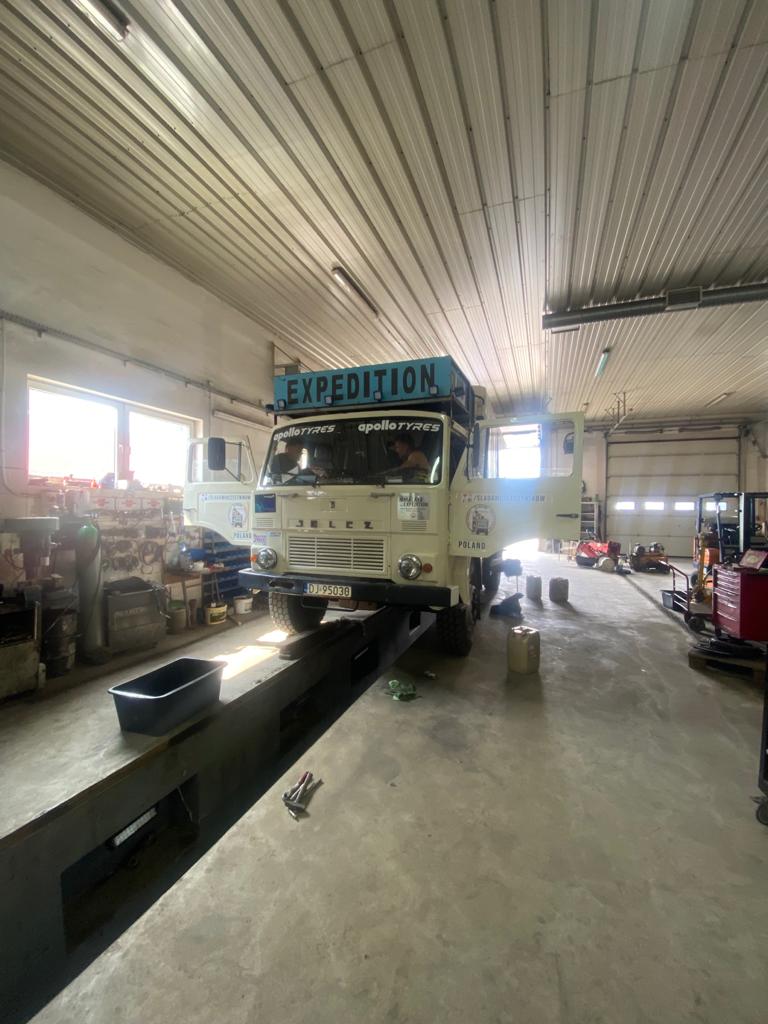 Niedzielny poranek to nie czas na wypoczynek. Wczesna pobudka i wita nas sam właściciel Krzysztof Jawor. Szybka organizacja oleju 85 W 140 GL4 i Arek zajmuje się jego wymianą. Zastąpił też zużyte kamienie do naszej skrzyni. Prace trwają do 11:30 szybki prysznic, zdjęcie pożegnalne i ruszamy dalej… do właściciela kolejnej firmy. Dzięki kolejnej uprzejmości wymienimy olej w silniku.