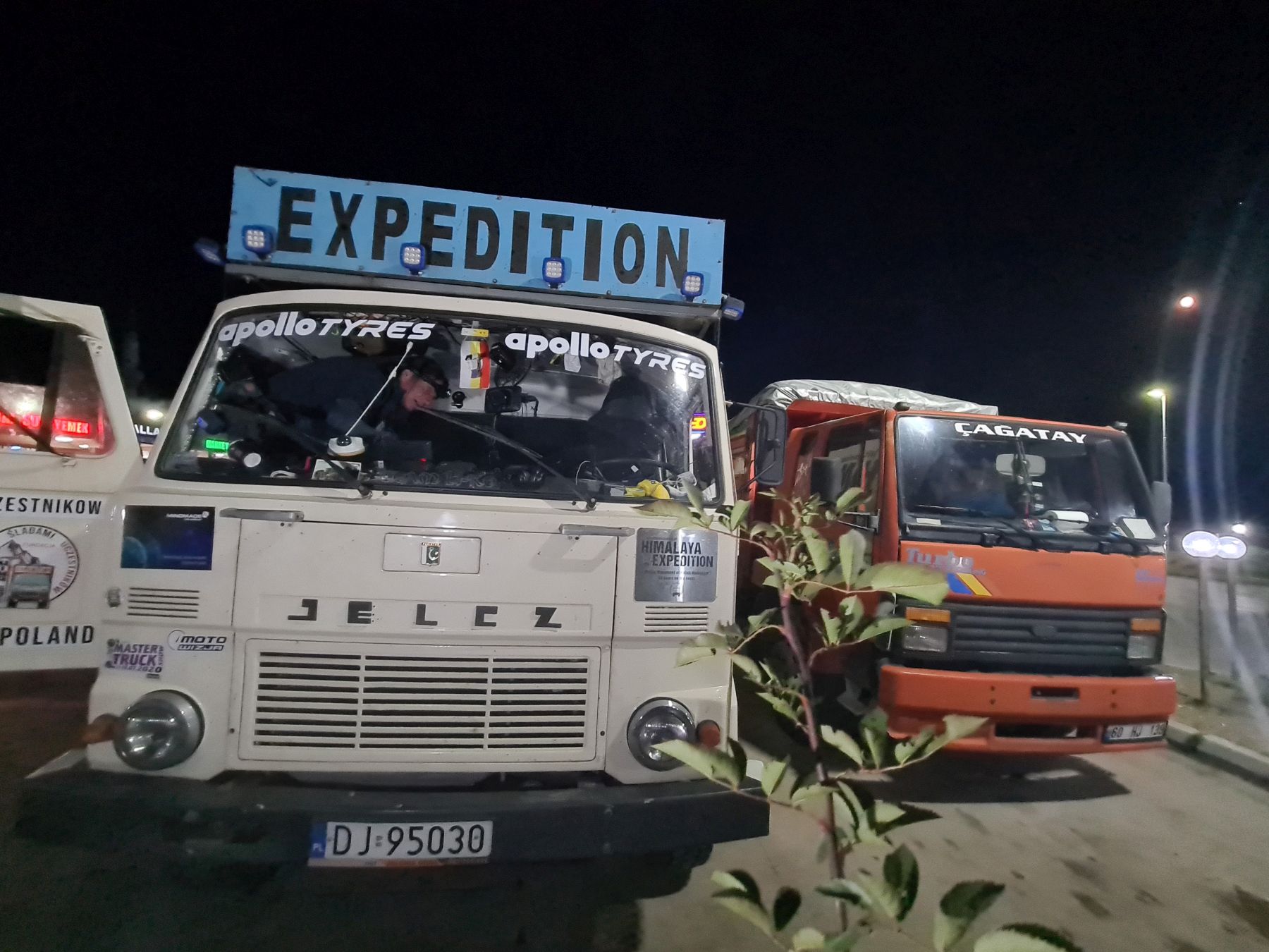 Poranek na stacji benzynowej w drodze do Gebze dość hałaśliwy. Najpierw koguty dały nam w kość, bo jak się okazało Jelonek zaparkował tuż obok tureckiego kurnika. Niedługo potem, bo o 6 rano kelnerzy kończąc nockę przepalali swoje nie młodsze od Jelonka auta osobowe budząc do życia cały parking. Ruszamy w drogę. Po pierwszych 100 km uświadamiamy sobie, że powinno już nam brakować w zbiornikach tego „wyeksportowanego” z Iranu oleju napędowego. Jelonek jednak bez trudu przekracza 100 km/h jadąc na luzie z górki! Czuć jakby dryfował, wrzucenie teraz piątego biegu mogłoby się objawić sporym przekroczeniem wszelkich możliwych norm jakościowych przebywania w kabinie. Po kilku kilometrach odnajdujemy stację, na której możemy się dogadać po rosyjsku z drugim kierowcą tureckim. Pracownik stacji obdarowuje nas ścierką dla Jelonka i kilkoma butelkami wody – jesteśmy nadal pod wrażeniem gościnności jaka spotyka nas podczas każdego postoju. Dojeżdżamy do Gebze. Jutro mamy zaplanowaną wystawę himalajską w tureckim oddziale firmy Adient. Mamy w planie hucznie przypomnieć nasz narodowy dorobek motoryzacyjny – Jelcz jako Jeżdżący Pomnik Złotej Ery Polskiego Himalaizmu, a także opowiedzieć o dokonaniach Polaków w historii himalaizmu światowego nie zapominając o zapleczu organizacyjnym Polaków. Jelonka wraz z całą galerią fotografii postawimy przed samym wejściem do zakładu, gdzie będą mogli to zobaczyć pracownicy firmy w trakcie dwóch zmian produkcyjnych. Trzymajcie kciuki!