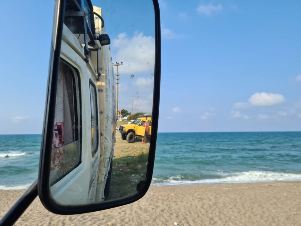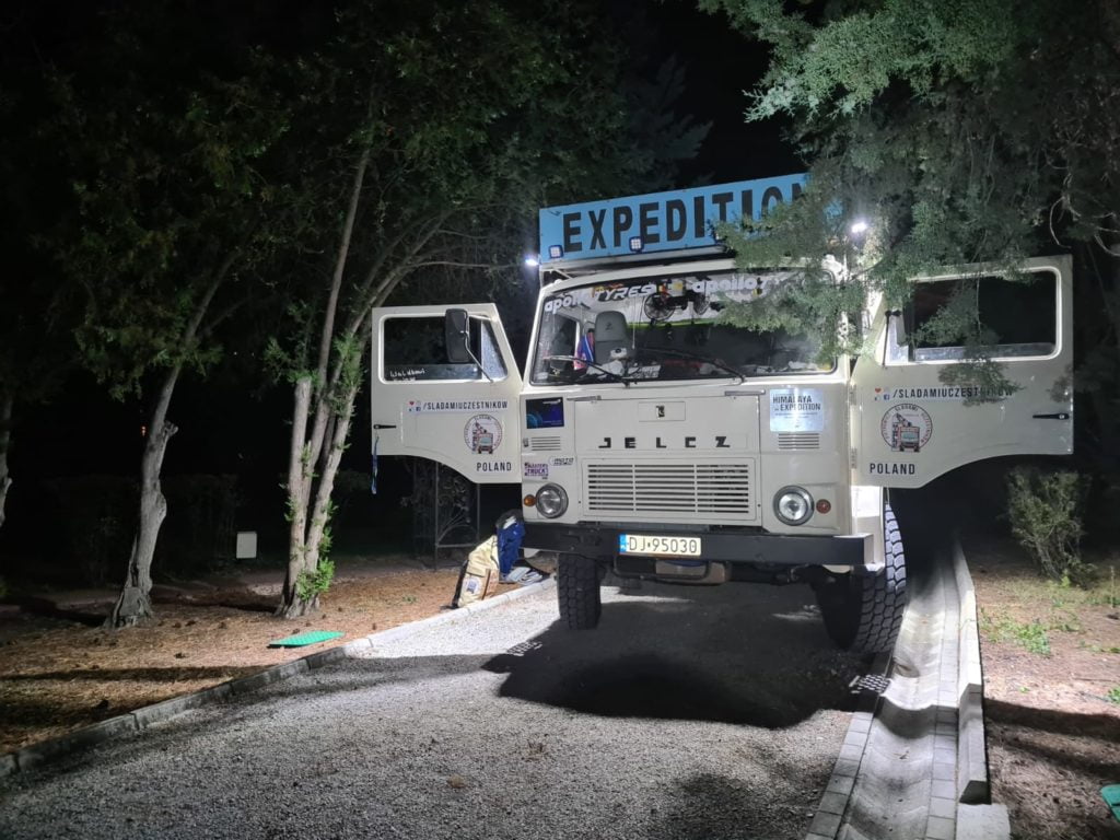Czy da się powiązać ciekawość i bezpieczeństwo? Zasłyszane w podróży, a im bliżej granicy z Iranem tym daje coraz bardziej do myślenia. Dziś kolejny krok i kilometry przybliżające nas do kolejnego państwa na naszej trasie. Do Ankary możemy wjechać dopiero po 22:00. Wszyscy są zgodni – jedziemy wzdłuż wybrzeża Morza Czarnego. Do pokonania są malownicze wzniesienia, które Jelonek nie bez wysiłku bierze na siebie. W nierównej walce z górami to tiry jednak zostają za Jelonkiem w tyle. Pit stop na stacji. To już standard, że poza większymi miastami (reguły stałej na to jednak nie ma) nie udaje się porozumieć z obsługą, w efekcie czego jedziemy nadal na jednym zbiorniku. Końcem podróży na dziś jest Ambasada Rzeczypospolitej Polskiej, a dokładnie kawałek placu w obrębie jej murów, abyśmy mieli gdzie zaparkować Jelonka. O 22:50 nadal nie możemy trafić błąkając się po pięknie udekorowanej nocą Ankarze. Wreszcie dotarliśmy na miejsce. Ogrodzony podwójnym płotem i murem teren. Witają nas funkcjonariusze Służby Ochrony Państwa. Protokoły bezpieczeństwa, kontrola i parkujemy Jelonka w nieprawdopodobnej scenerii naszej Ambasady. Dziś każdy śpi na zewnątrz. Przepiękny park, w którym już za parę godzin zaprezentujemy wystawę fotografii Pierwszej Jeleniogórskiej Wyprawy w Himalaje. Jelonek jako część wystawy posłuży również do komunikacji z Polską. Całe wydarzenie chcemy transmitować na żywo. Wierzę, że pierwsze skrzypce odegra Rysiek, który im dalej w Azję, tym bardziej odkrywa prawdziwie oddane „Śladami Uczestników”.